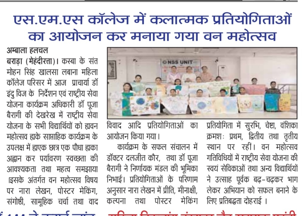 NSS cell organised Poster Making and Slogan Writing competitions on the topic Save Trees Save Earth, on 26 july,2024