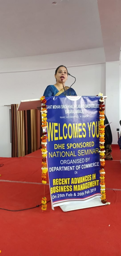 Two Days National seminar On'' Recent Advances in Business Management '' on 25th to 26th feb 2019
