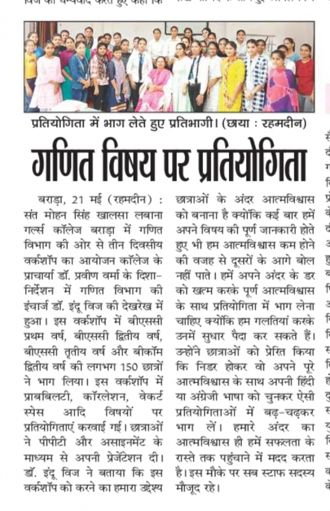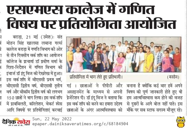 Three Days Workshop on Mathematics (22 May 2022)