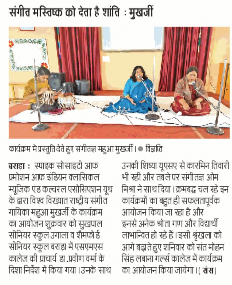 The program of world famous national music singer Sushri Mahua Mukherjee was organized by Spike Society of Promotion of Indian Classical Music and Cultural Association Youth (28 November 2022 to 3 December 2022)